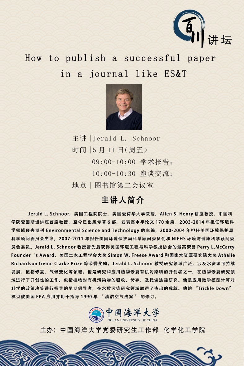 研究生百川讲坛-Jerald L. Schnoor:How to publish a successful paper in a journal like ES&T