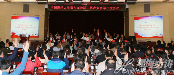本站讯 开云电竞网址第六届教职工代表大会第二次会议于2018年5月10日在崂山校区召开。大会听取并讨论了学校工作报告、学校财务工作报告,书面审议了教代会、工会工作报告,听取并审议了学校六届一次教代会提案工作报告,通报了学校海洋科技创新园区(黄岛校区)建设情况,审议通过了六届一次教代会提案工作报告决议,并通过了大会决议。