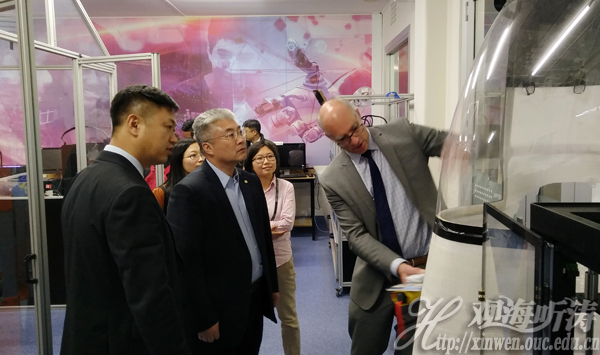 当日下午,于志刚校长与阿德莱德大学校长Peter Rathjen就两校战略合作进行了深入会谈,并决定立即着手筹建合作办学机构。代表团成员工程学院刘勇教授、信息科学与工程学院董军宇教授、食品科学与工程学院毛相朝教授分别介绍了各自领域的学科建设情况,同时与阿德莱德大学机械工程学院、电子工程学院、化工学院和工程、计算机与数学科学部的教授们进行了座谈交流。经过会谈,双方一致同意:聚焦在海洋工程、计算机科学与技术、人工智能等专业领域,开展合作办学。访问期间,代表团考察了阿德莱德大学多智能控制、能源材料(石墨烯和3D打印)等实验室。