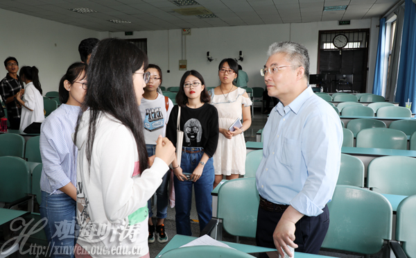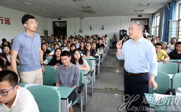 本站讯 “真没想到‘形势与政策课’可以这么讲,真没想到校长讲课是这样的,真没想到校长这么平易近人!”6月14日下午,崂山校区7218教室的“形势与政策”课下课铃已经敲响,坐在教室最前排的海洋地球科学学院勘查技术与工程专业2016级的臧虎临同学还沉浸在课堂内容里若有所思。这堂别开生面的“形势与政策”课的授课教师不是同学们平时的任课老师,而是校长于志刚教授,他为全校各院系近400名本科生代表围绕“学校开云电竞官网app入口手机版和本科教育教学”这个主题,讲授了一堂题为《让“学在海大”更具魅力——与同学们讨论面向未来的学习》的专题课。学校教育系主任王海涛担任本堂课的助教。