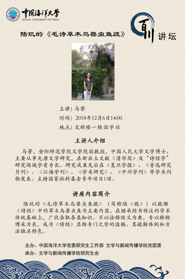 研究生百川讲坛-马芳:陆玑的《毛诗草木鸟兽虫鱼疏》