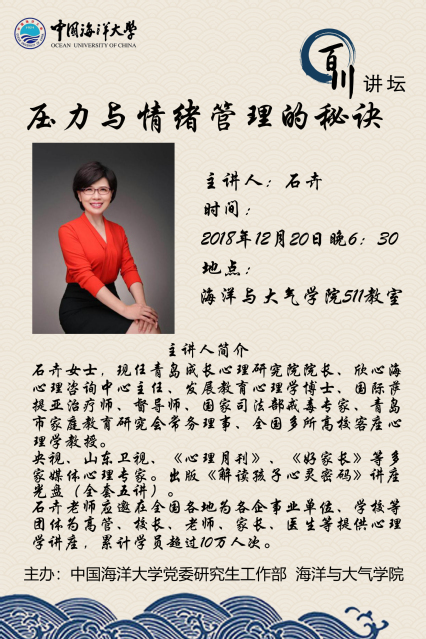 研究生百川讲坛-石卉:压力与情绪管理的秘诀