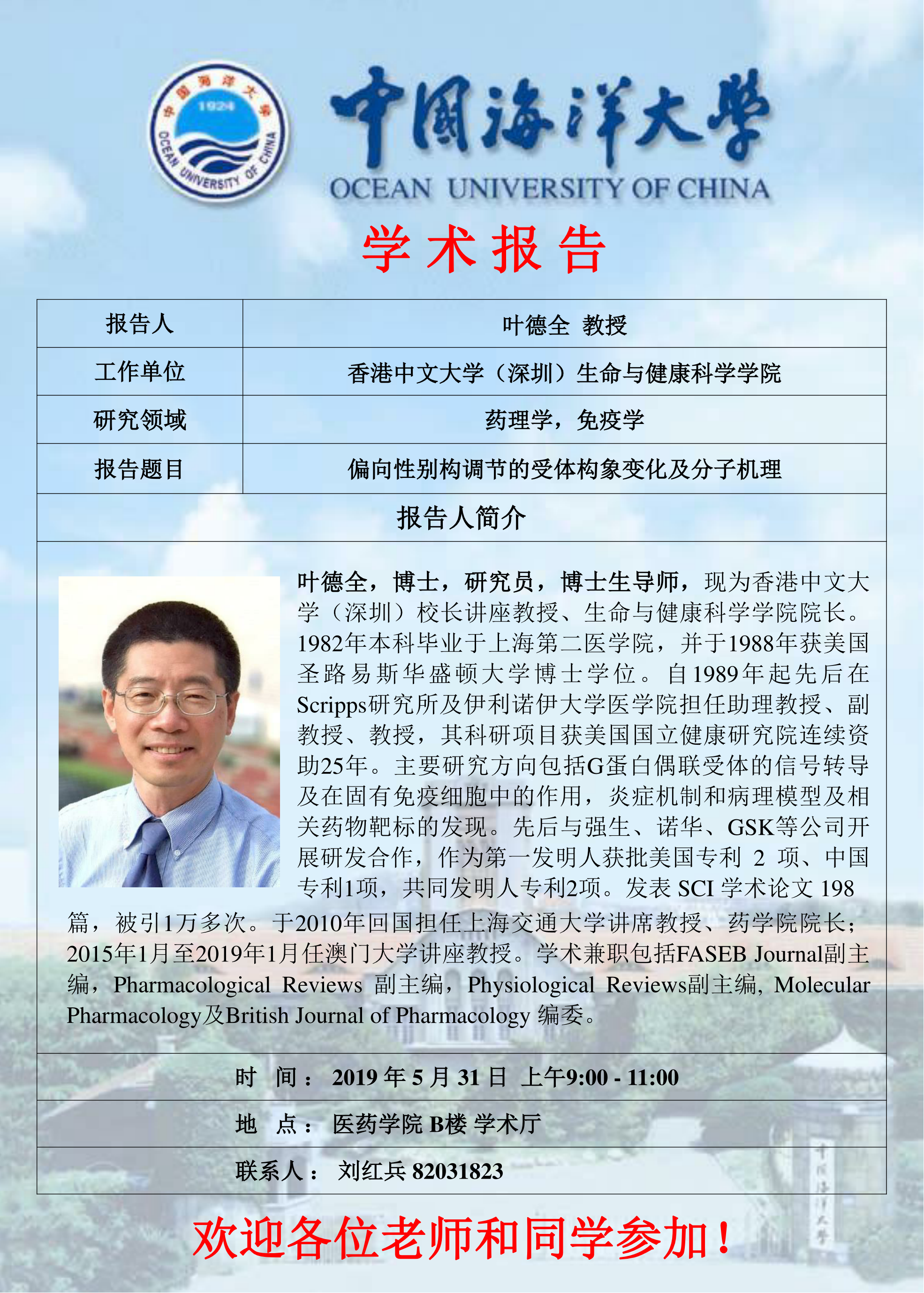 报告题目:偏向性别构调节的受体构象变化及分子机理