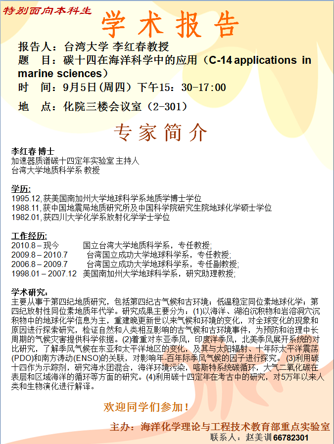 李红春教授学术报告:碳十四在海洋科学中的应用