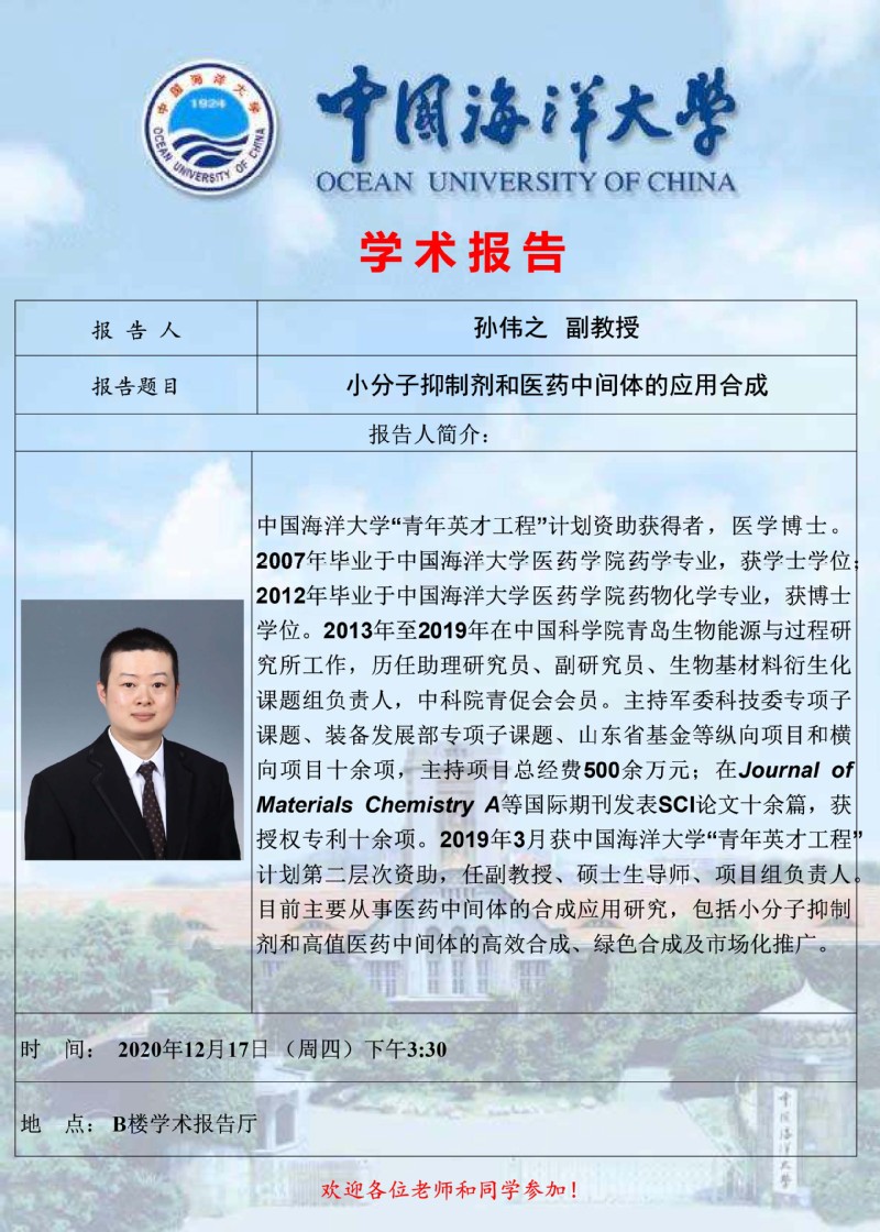 报告题目:小分子抑制剂和医药中间体的应用合成