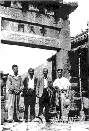 1949年秋,何作霖先生等在泰山中天门,左起:赫祥安、张保民、何作霖、司幼东