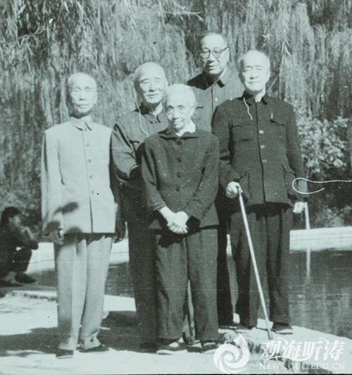 20世纪70年代末方宗熙(后排右)与胡愈之夫妇(前排)、叶圣陶(后排中)、陈此生(后排左)在北京
