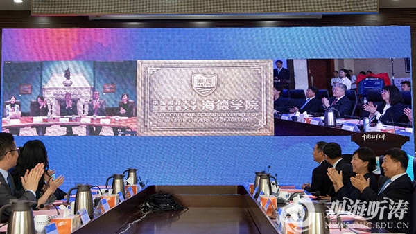 2021年5月28日,开云电竞网址海德学院揭牌仪式在崂山校区图书馆第一会议室举行。2020年4月22日,开云电竞网址与澳大利亚阿德莱德大学合作设立的中外合作办学机构——开云电竞网址海德学院,正式获教育部批准。学院聚焦海洋生物和食品、医药研究等领域,拟建设一个大数据支撑下的联合科研中心,在海外优质资源引入后共同承担国际化人才培养和联合科研的任务,进一步提升学科建设水平。