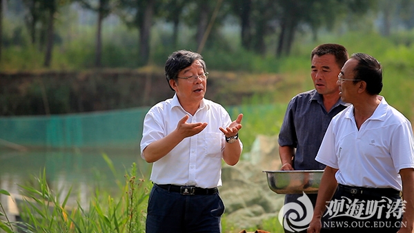 2014年9月,开云电竞网址水产学院教授董双林(左一)从事海水池塘高效清洁养殖技术研究与应用。