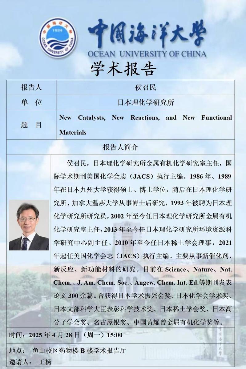 报告题目:New Catalysts, New Reactions, and NewFunctional Materials