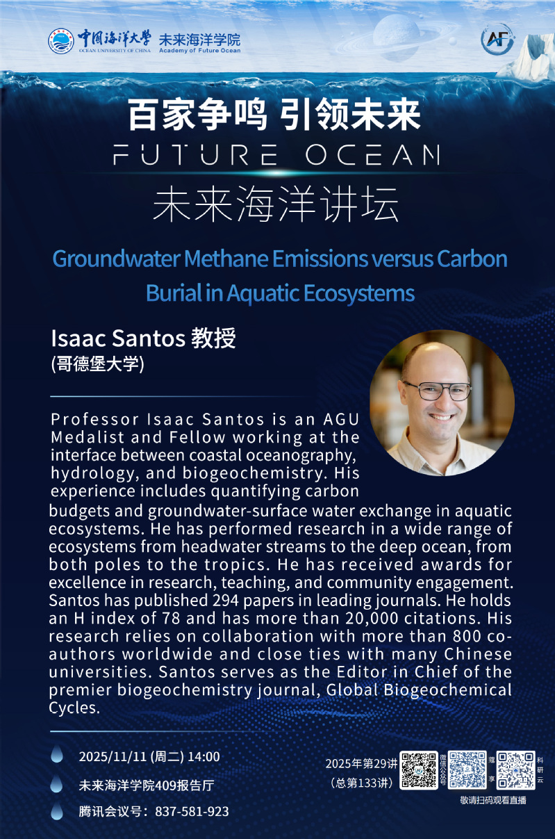 未来海洋讲坛第133讲(2025年第29讲)-Isaac Santos:Groundwater Methane Emissions versus Carbon Burial in Aquatic Ecosystems