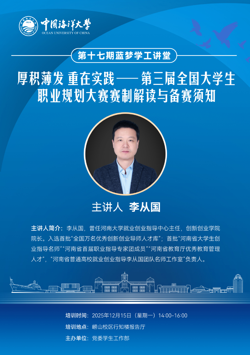 蓝梦学工讲堂第17期-李从国:厚积薄发 重在实践—第三届全国大学生职业规划大赛赛制解读与备赛须知