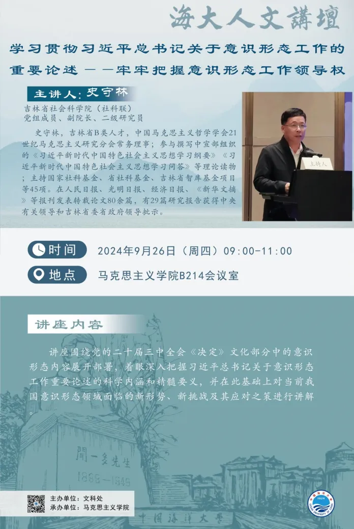 海大人文讲坛2024年第66讲-史守林:学习贯彻习近平总书记关于意识形态工作的重要论述 ——牢牢把握意识形态工作领导权诞生