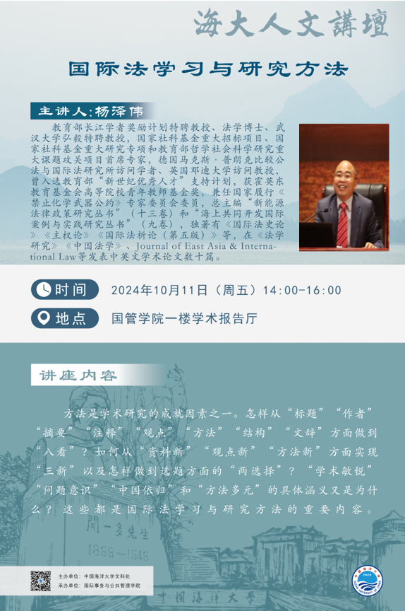 海大人文讲坛2024年第72讲-杨泽伟:国际法学习与研究方法