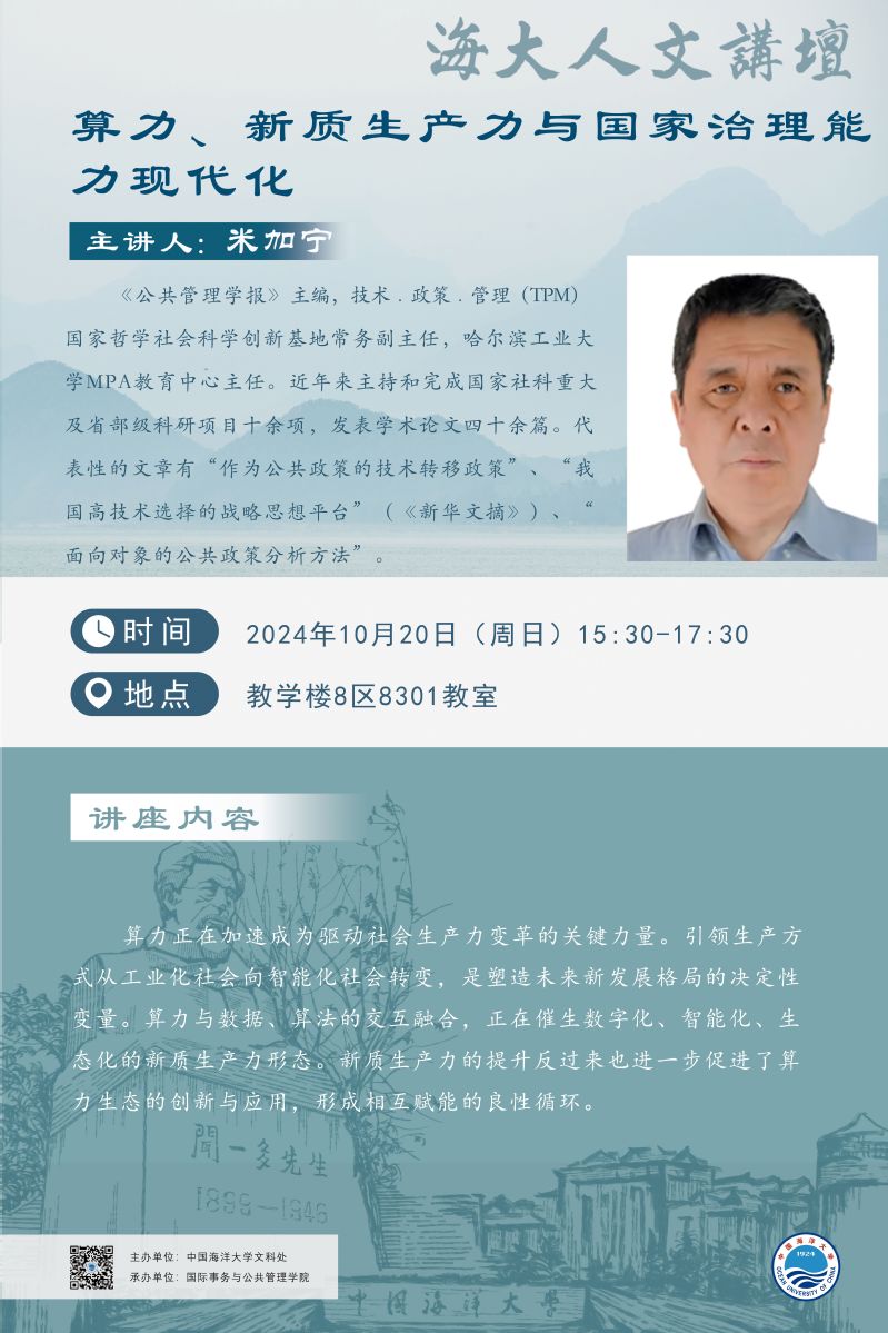 海大人文讲坛2024年第73讲-米加宁:算力、新质生产力与国家治理能 力现代化