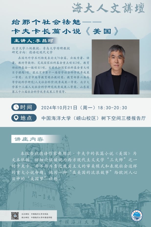 海大人文讲坛2024年第74讲-李昌珂:给那个社会祛魅-- 卡夫卡长篇小说《美国》