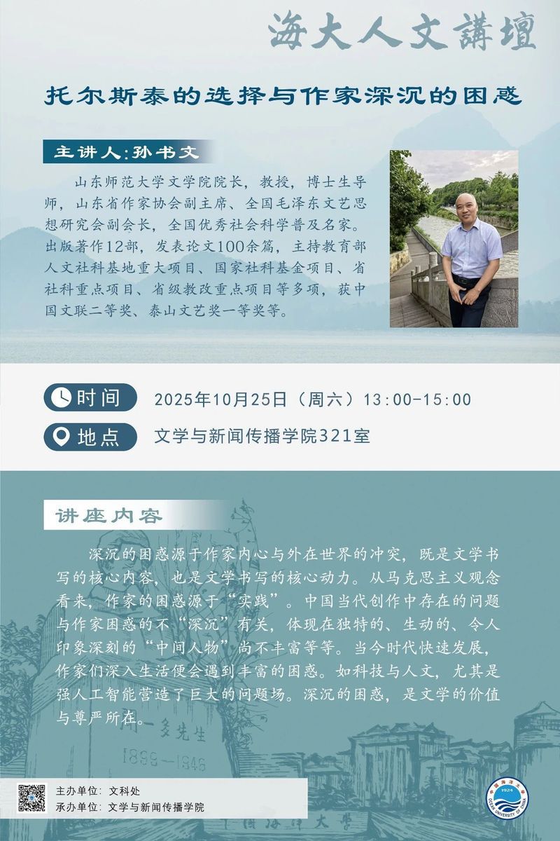 海大人文讲坛2025年第75讲-孙书文:托尔斯泰的选择与作家深沉的困惑