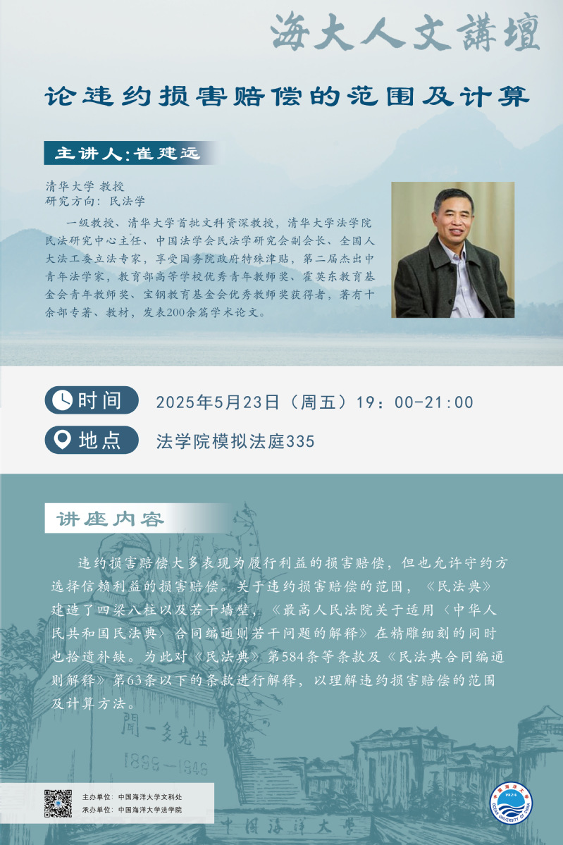 海大人文讲坛2025年第36讲-崔建远:论违约损害赔偿的范围及计算