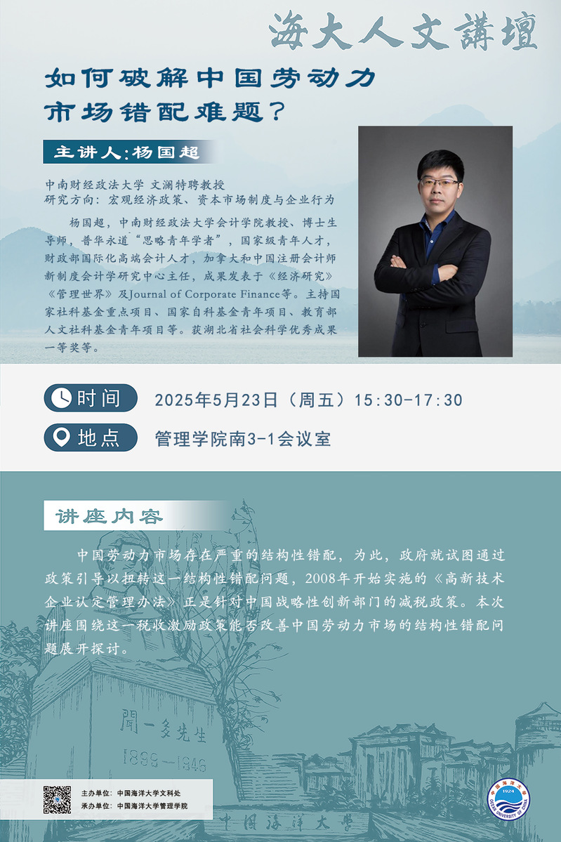 海大人文讲坛2025年第34讲-杨国超:如何破解中国劳动力市场错配难题?