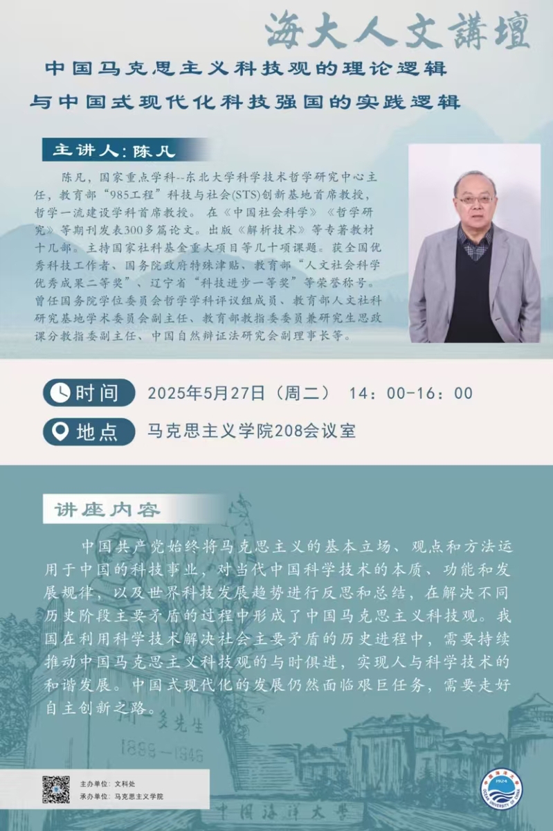 海大人文讲坛2025年第37讲-陈凡:中国马克思主义科技观的理论逻辑与中国式现代化科技强国的实践逻辑