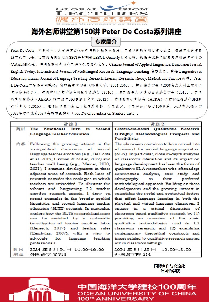 海外名师讲堂第一百五十讲-Peter De Costa系列讲座
