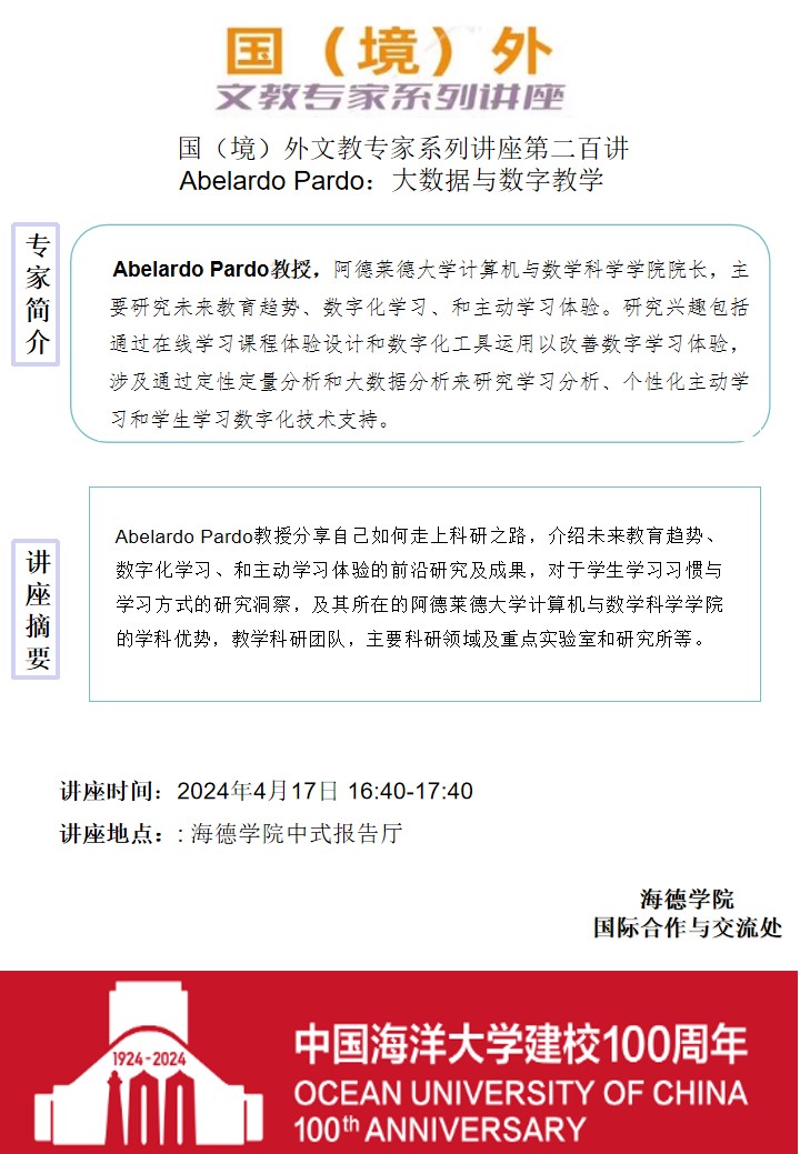 国(境)外文教专家系列讲座第二百讲-Abelardo Pardo:大数据与数字教学