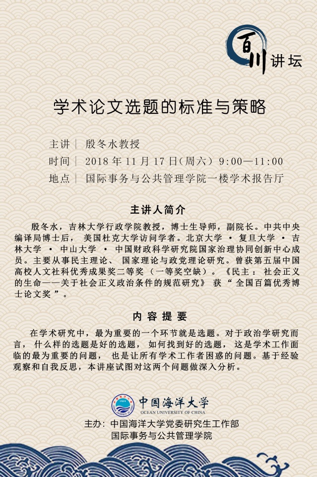 研究生百川讲坛-殷冬水:学术论文选题的标准与策略