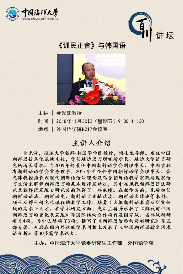 研究生百川讲坛-金光洙:《训民正音》与韩国语