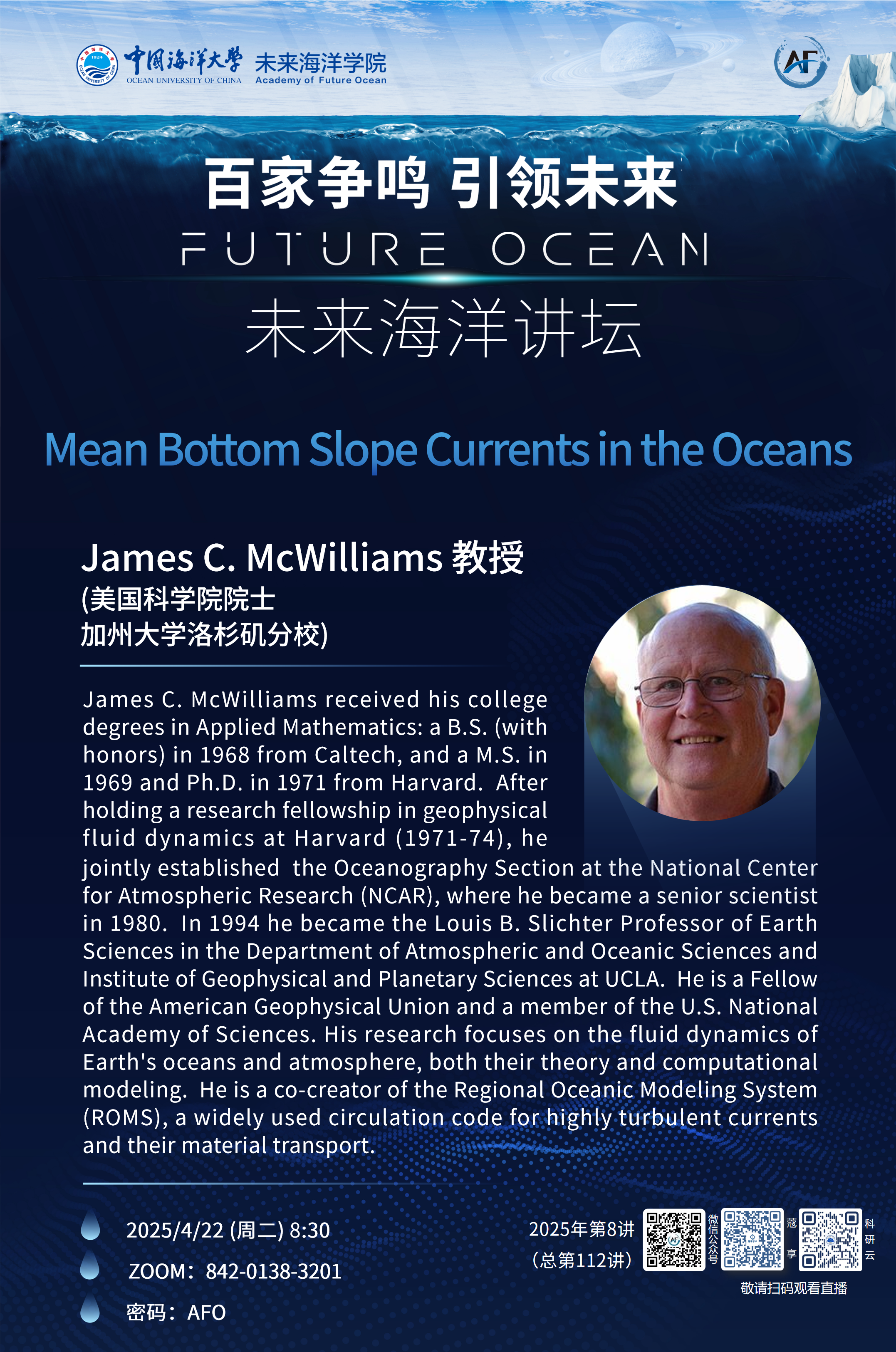 未来海洋讲坛第112讲(2025年第8讲) -James C. McWilliams:Mean Bottom Slope Currents in the Oceans