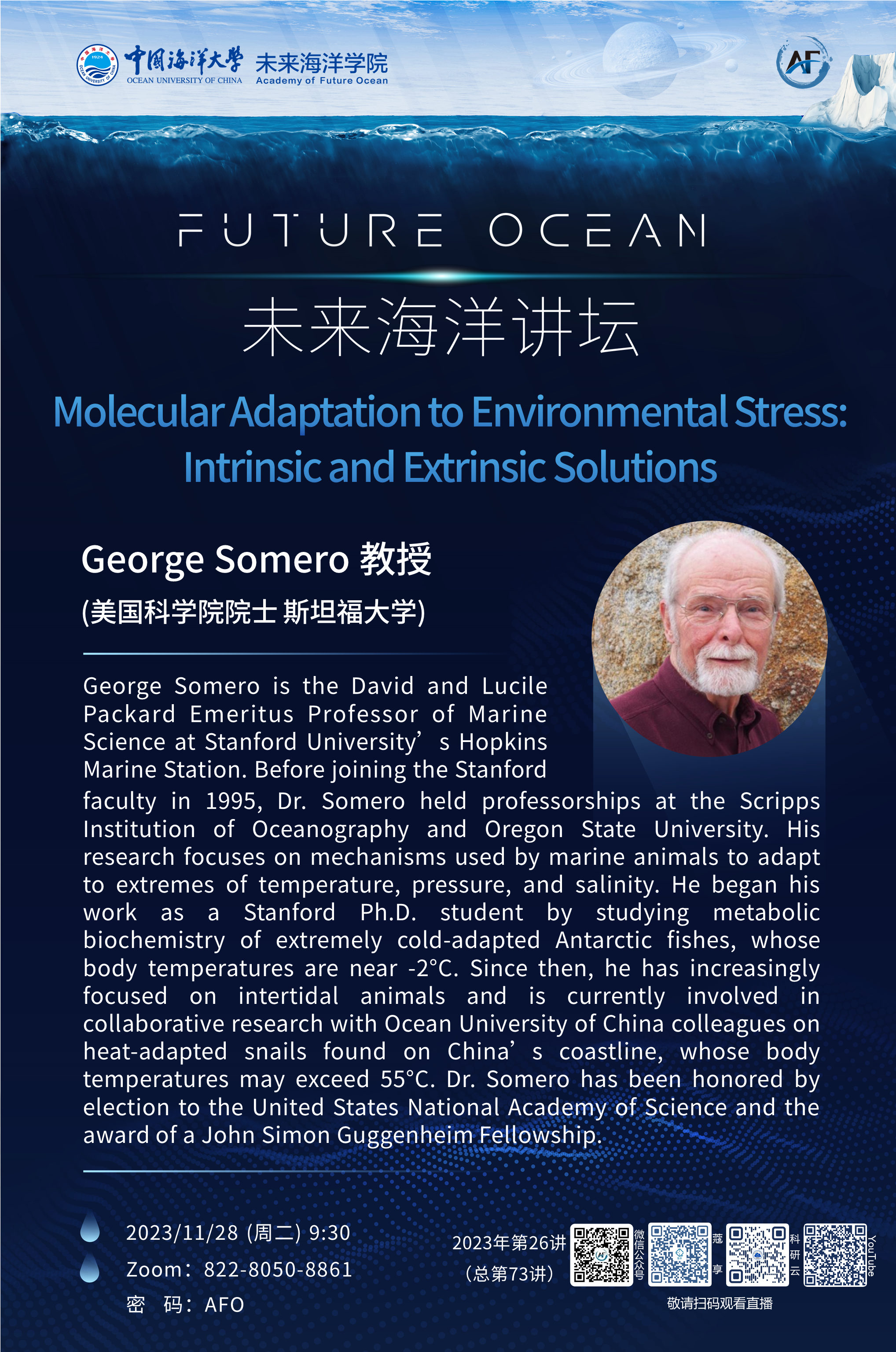 未来海洋讲坛第73讲(2023年第26讲)-George Somero:Molecular Adaptation to Environmental Stress: Intrinsic and Extrinsic Solutions