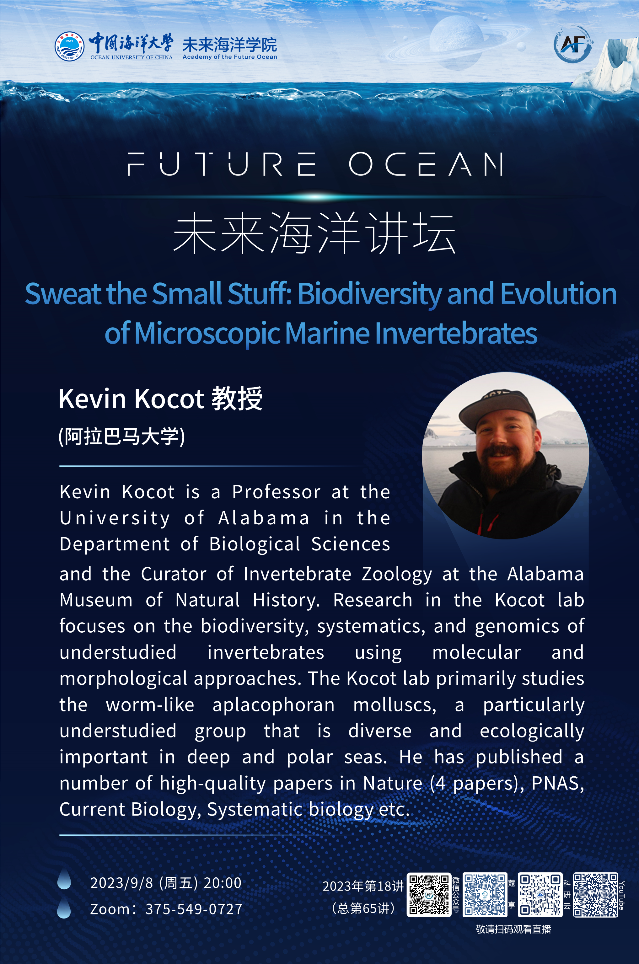 未来海洋讲坛第65讲(2023年第18讲)-Kevin Kocot:Sweat the Small Stuff: Biodiversity and Evolution of Microscopic Marine Invertebrates