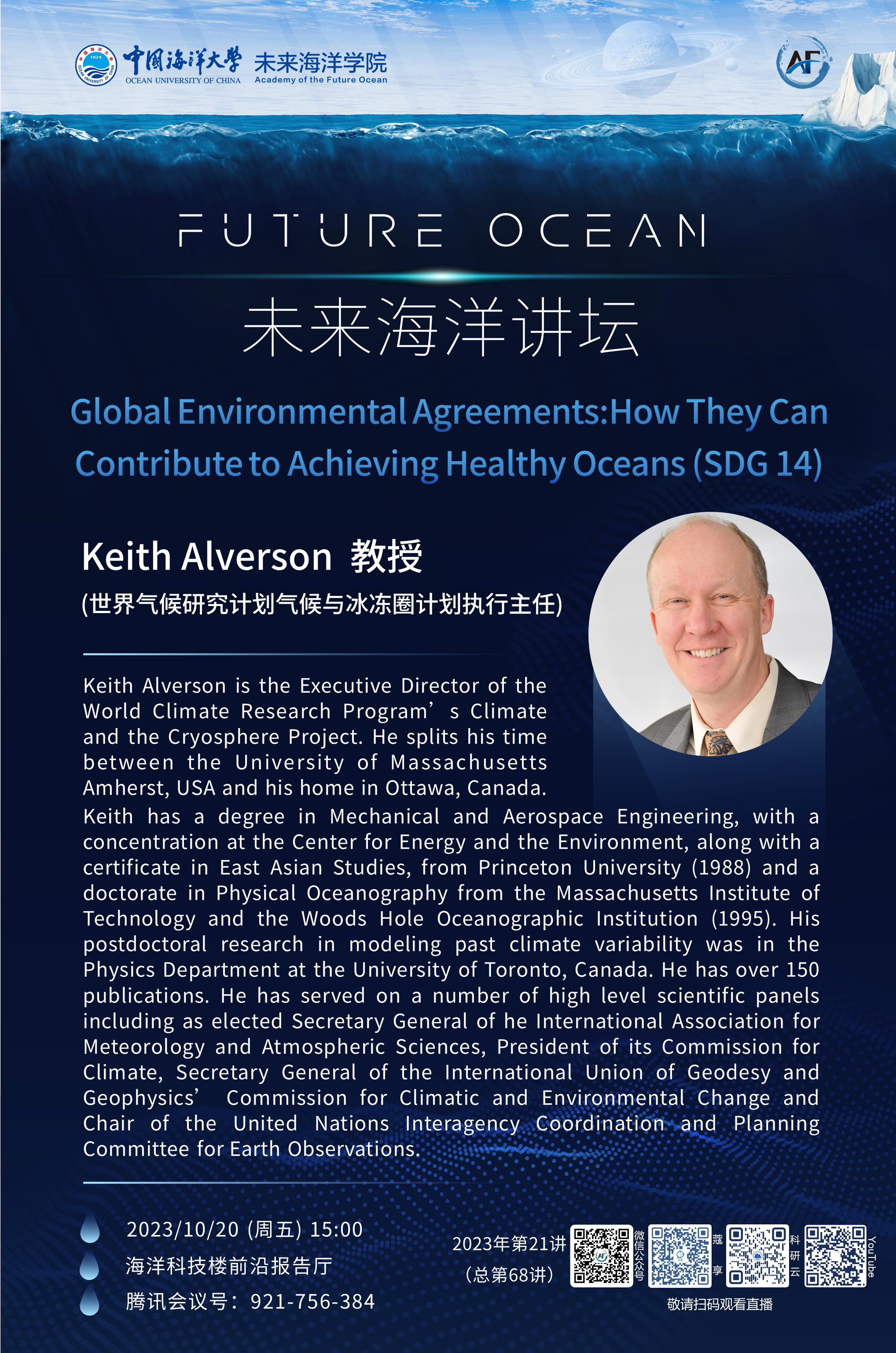 未来海洋讲坛第68讲(2023年第21讲)-Keith Alverson:Global Environmental Agreements:How They Can Contribute to Achieving Healthy Oceans (SDG 14)
