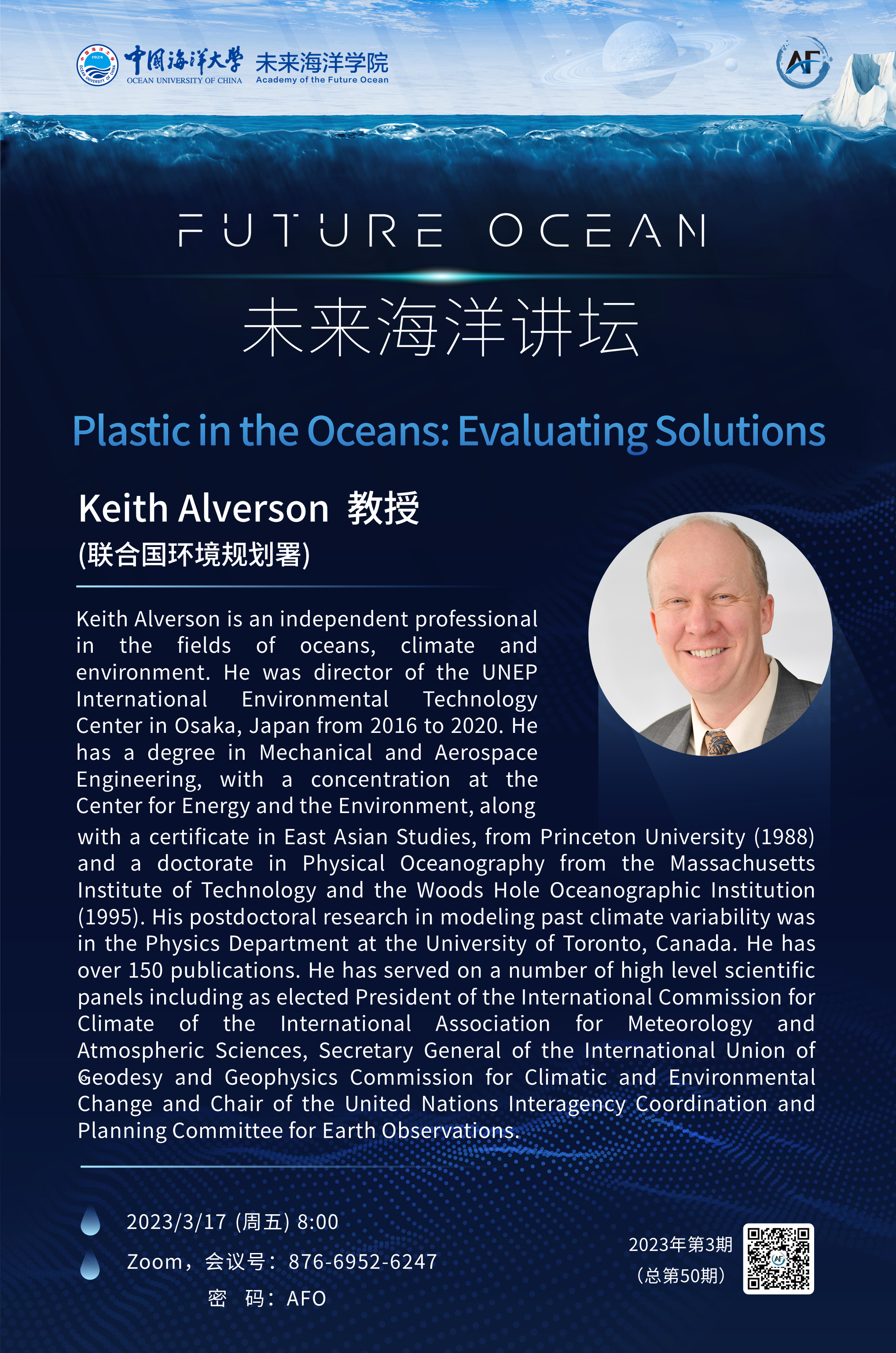 未来海洋讲坛第50讲(2023年第3期)-Keith Alverson:Plastic in the Oceans: Evaluating Solutions