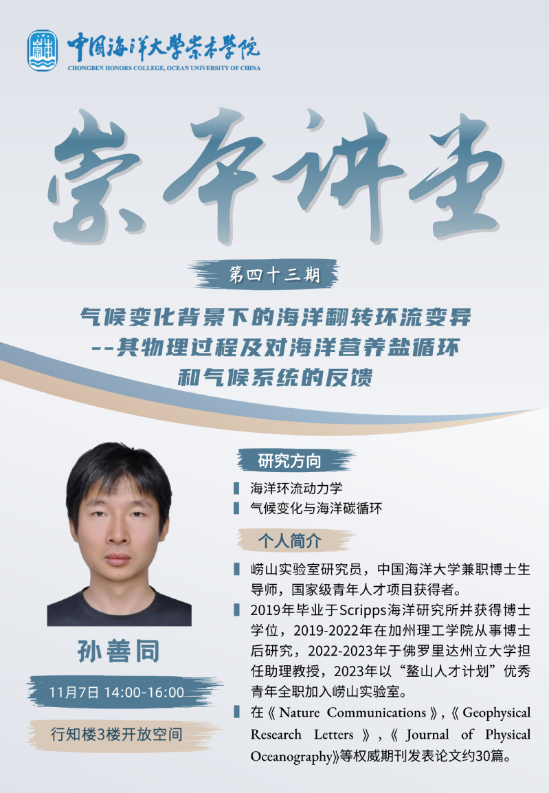 崇本讲堂第四十三讲-孙善同:气候变化背景下的海洋翻转环流变异——其物理过程及对海洋营养盐循环和气候系统的反馈