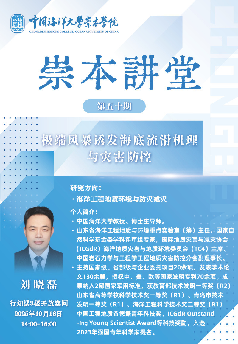 崇本讲堂第五十讲-刘晓磊:极端风暴诱发海底流滑机理与灾害防控