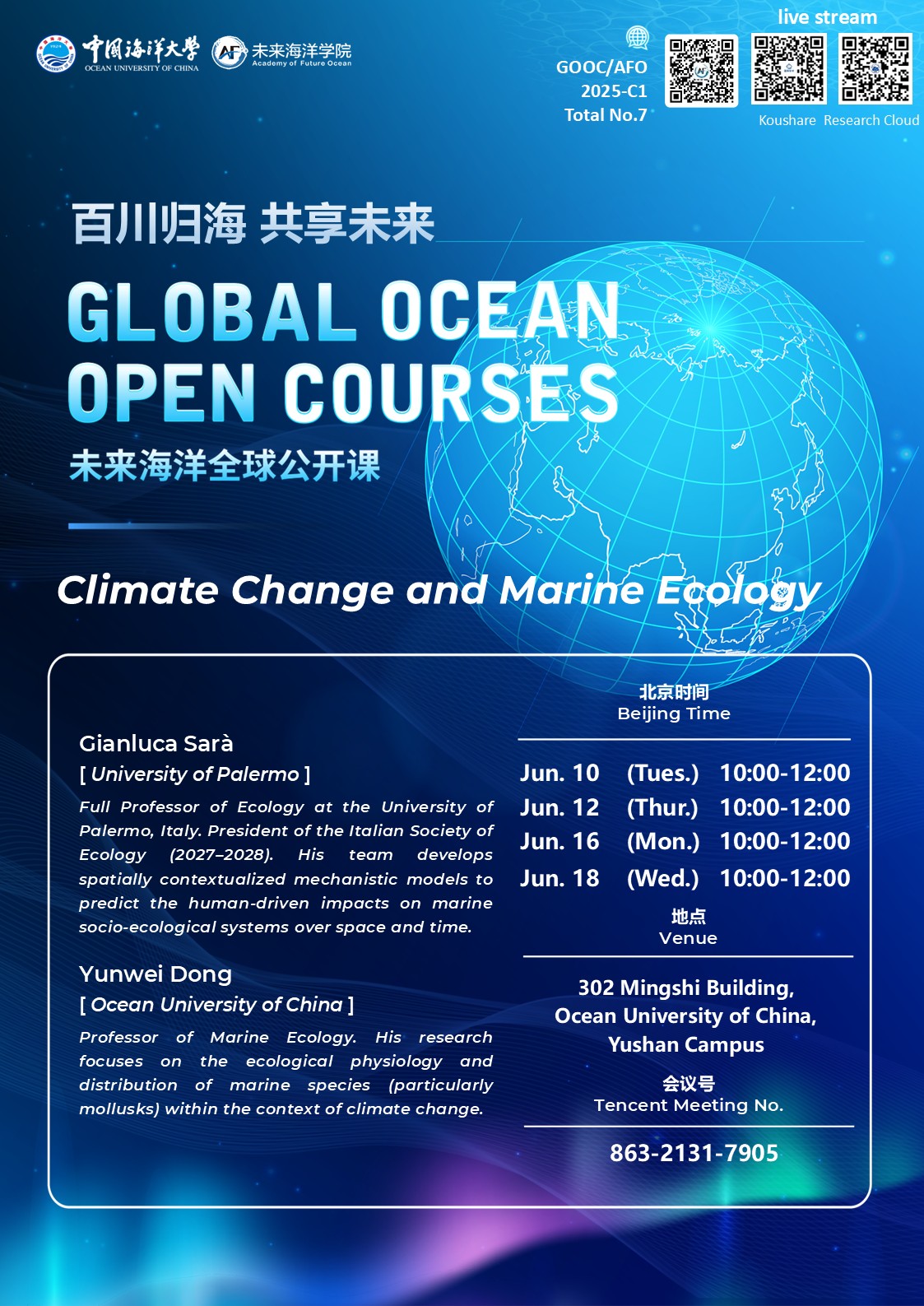 未来海洋全球公开课第7课-Gianluca Sarà & Yunwei Dong:Climate Change and Marine Ecology