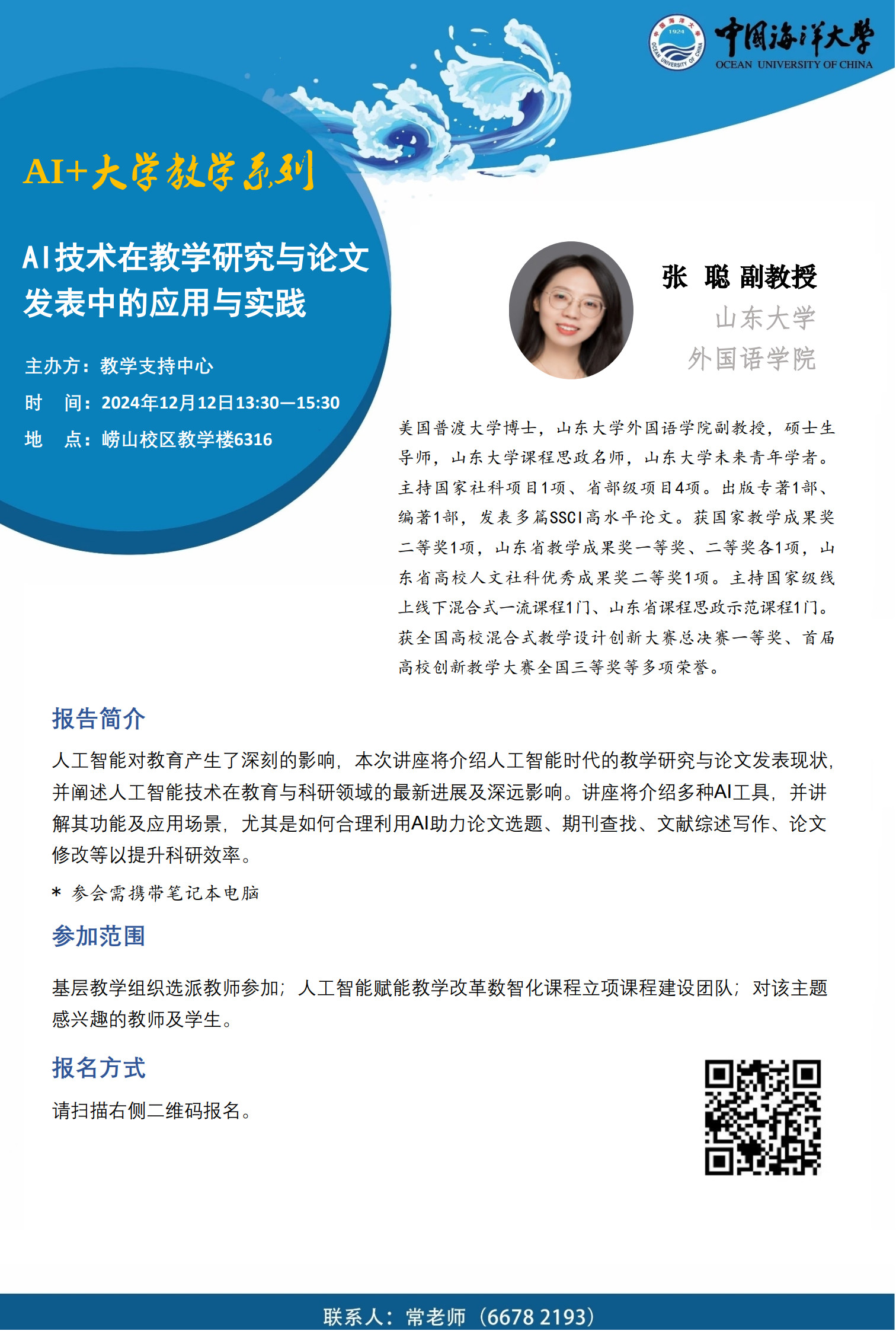 教师发展讲坛2024年第20讲-张聪:AI技术在教学研究与论文发表中的应用与实践