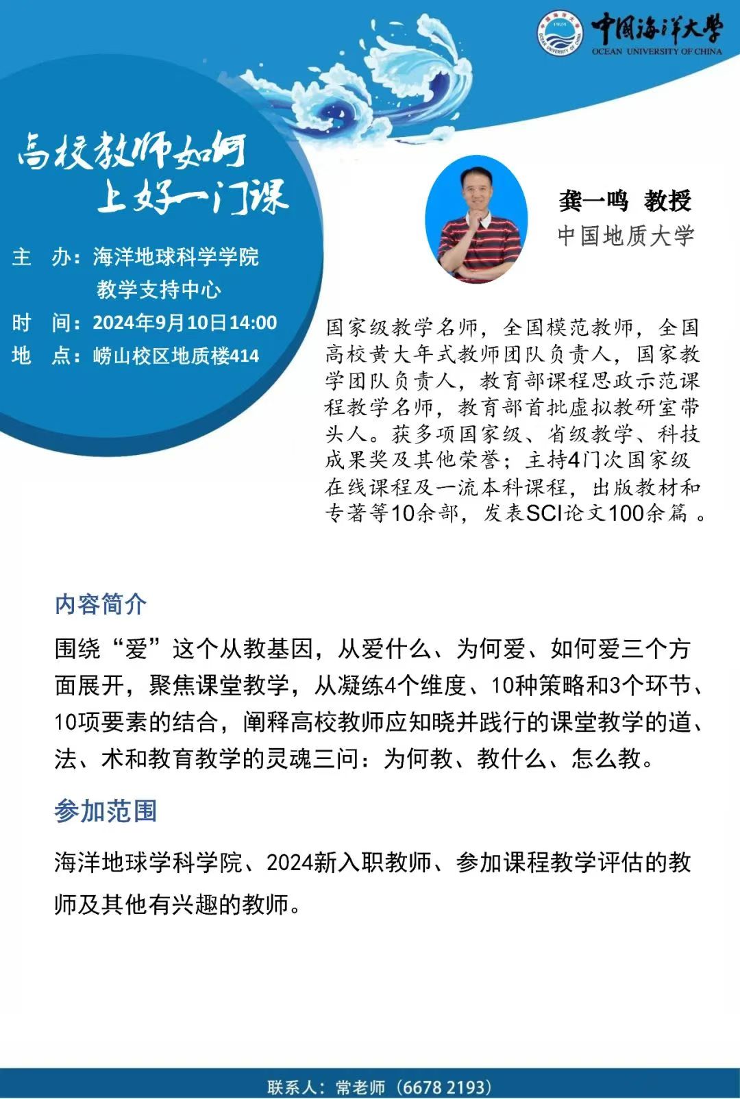 教师发展讲坛2024年第16讲-龚一鸣:高校教师如何上好一门课