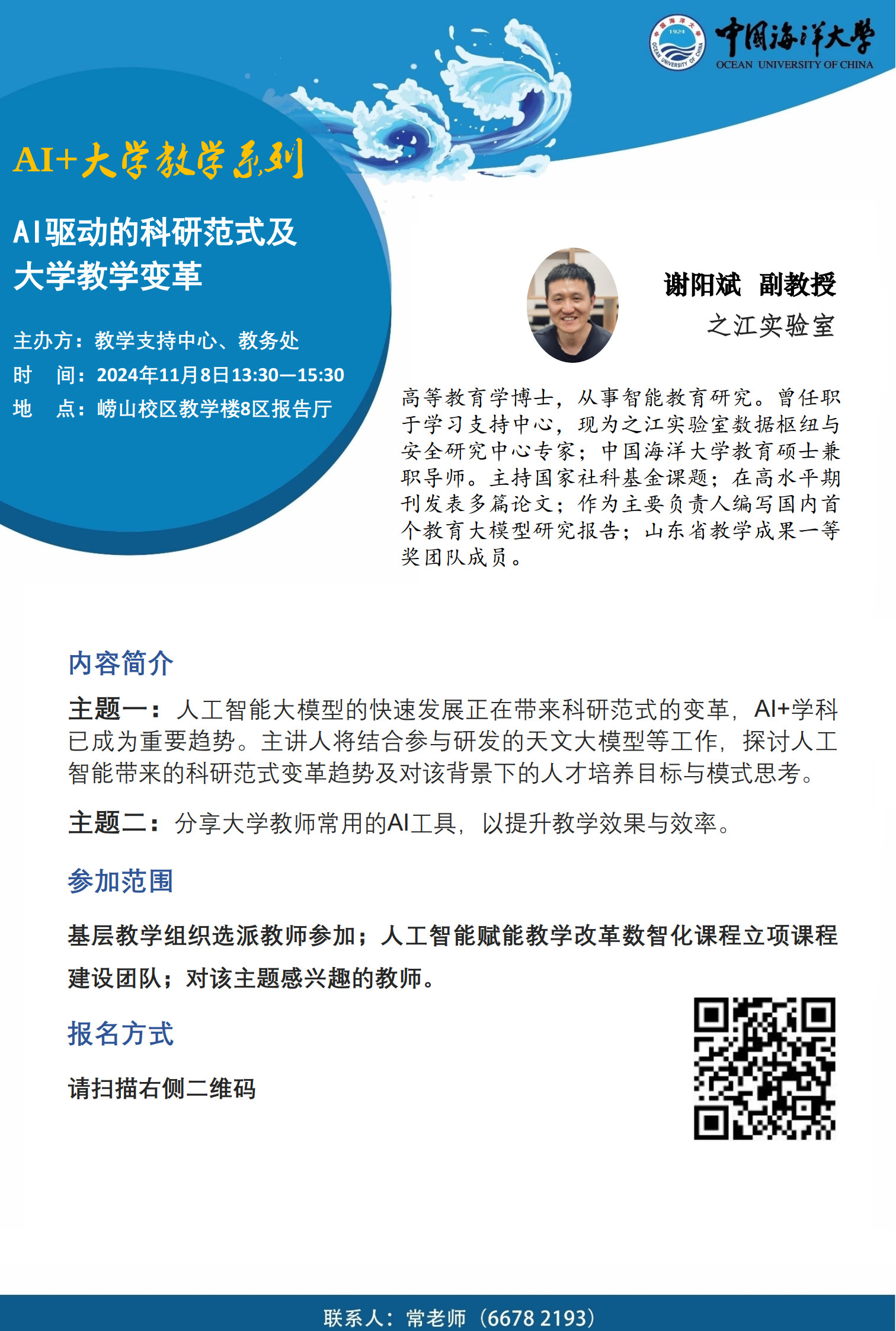 教师发展讲坛2024年第18讲-谢阳斌:AI驱动的科研范式及大学教学变革