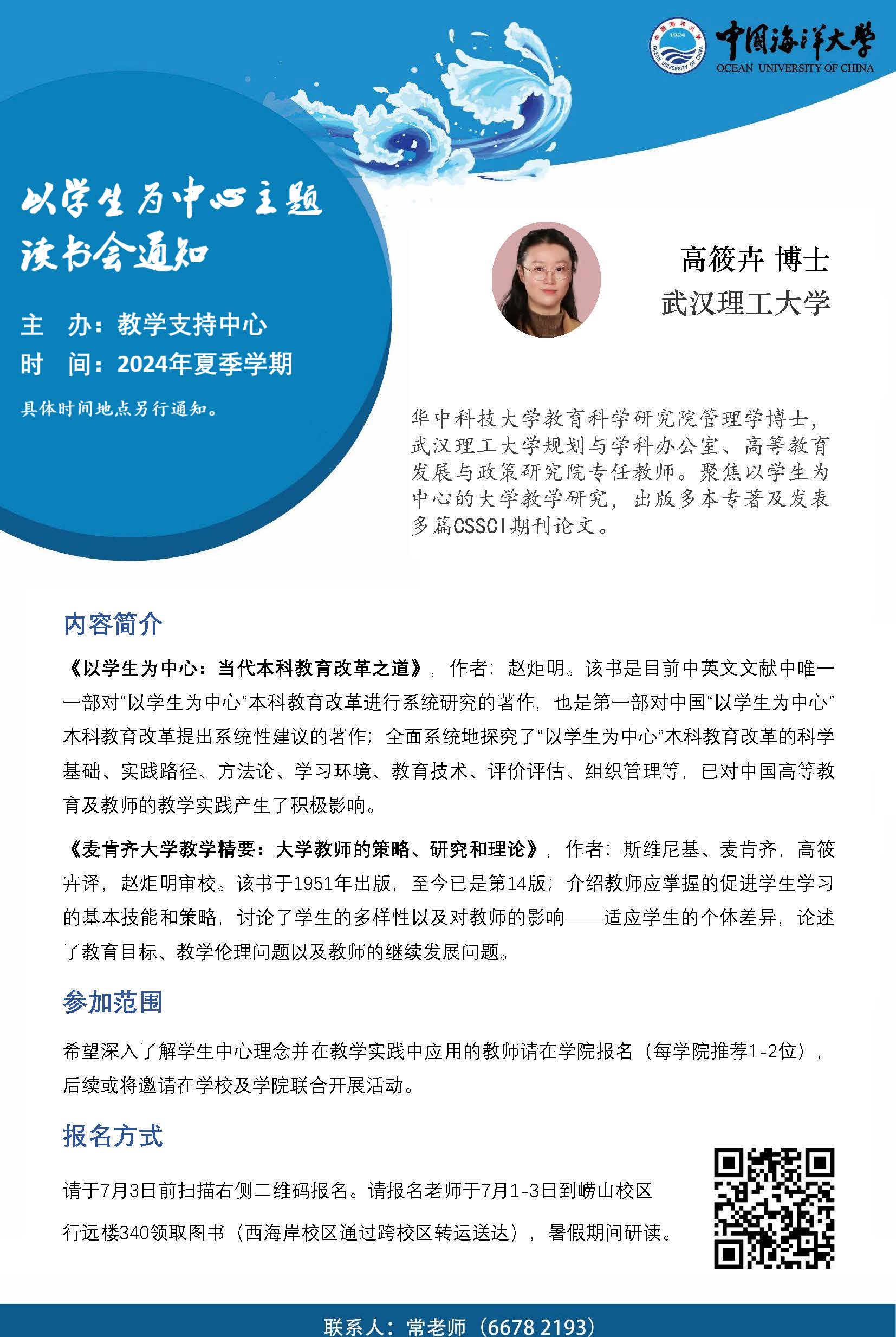 教师发展讲坛2024年第13讲-高筱卉:以学生为中心主题读书会