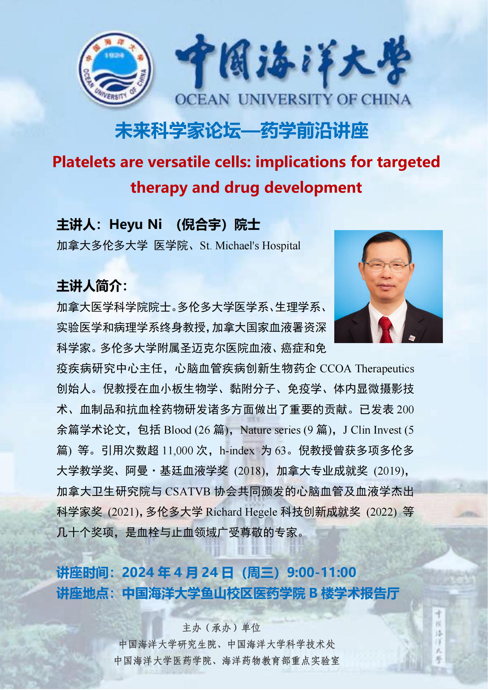 未来科学家论坛-Heyu Ni:Platelets are versatile cells: implications for targeted therapy and drug development