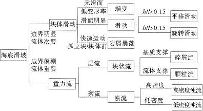 Mulder等研究了超过100例全新世和更新世海洋块体运动,根据运动形式、结构特征、破坏面形状将其划分为3种主要类型:滑动/滑塌、塑性流、浊流,并强调整个运动过程中各种运动类型间的动态关系。