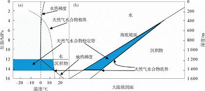 图8 天然气水合物压力—温度相图与近海斜坡图解