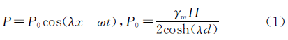 波浪作用简化为正弦,如图7a,其对海底作用的压力P 可用公式⑴表示,压力曲线如图7b: