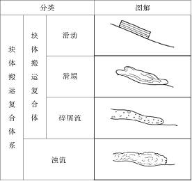 Snanmugam指出滑坡包括滑动、滑塌、碎屑流、倾倒、蠕变、岩屑崩落等块体搬运体系(masstransport deposits,简称MTD)所有类型。