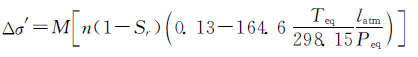 式中:M为土体侧限压缩模量,n为孔隙率,Sr为饱和度,Teq为气体水合物的稳定温度(卡尔文温度),atm为标准大气压,Peq为标准大气压下,气体水合物的稳定压力。公式⑶成立的假设为水体不可压缩,气体遵循波义耳定律。前提条件为标准状况下,1体积水合物分解产生164.6体积甲烷气体和0.87体积水。
