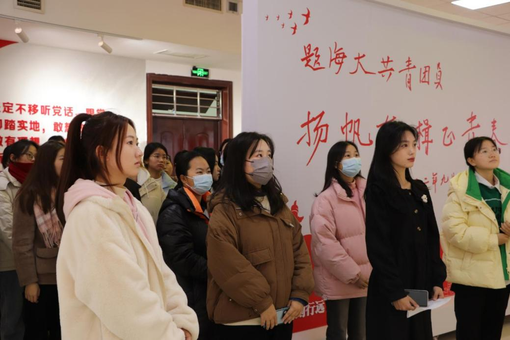活动开始前,团支部组织全体参会人员共同参观学校共青团宣传教育展厅,邀请学校第26届研究生支教团成员、2020级市场营销专业本科生丁豪为团支部系统讲解了展厅的陈列和主要内容,通过参观,同学们深受激励,纷纷表示将赓续红色基因,以强烈的使命感和责任感展现青年担当。