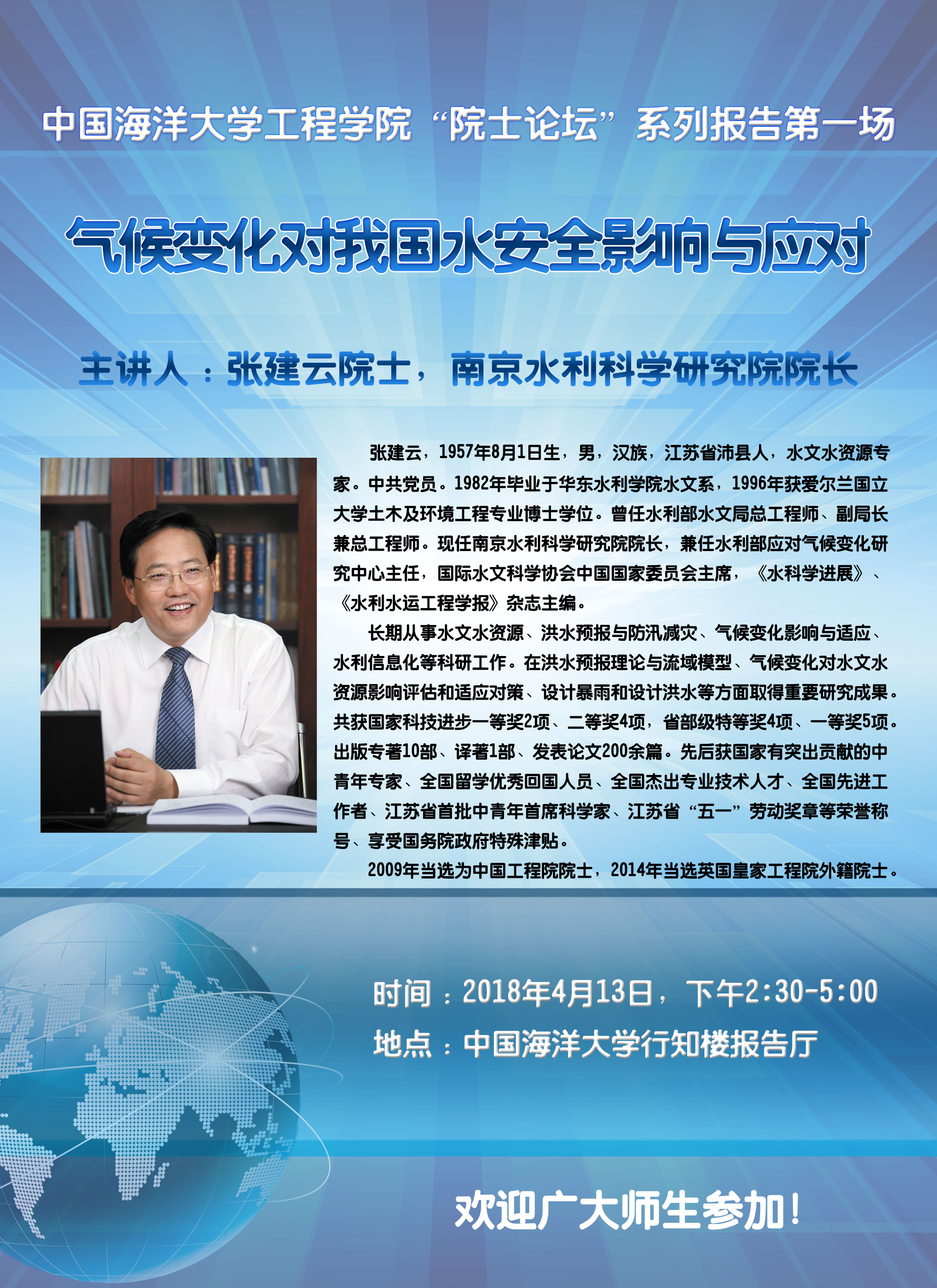 工程学院"院士论坛"系列报告第一场-张建云:气候变化对我国水安全影响与应对