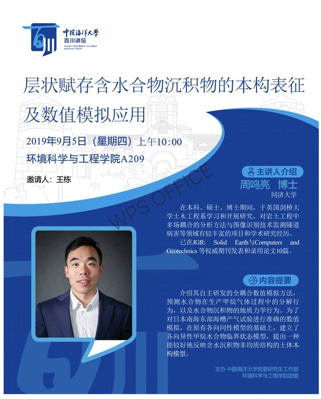 研究生百川讲坛-周鸣亮:层状赋存含水合物沉积物的本构表征及数值模拟应用