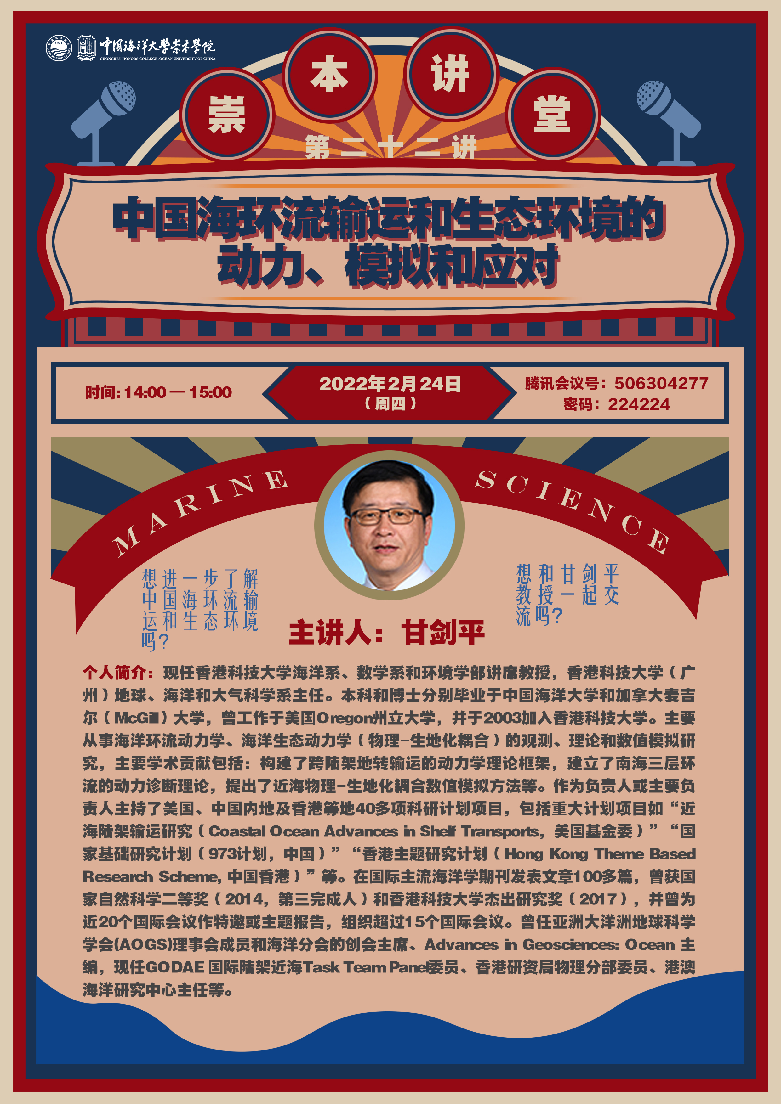 崇本讲堂第二十二讲-甘剑平:中国海环流输运和生态环境的动力、模拟和应对